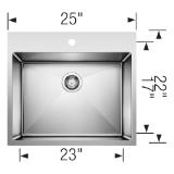 - X-patterned grooves quickly drain and prevent liquids from pooling in the sink basin