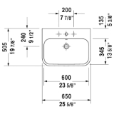 - Washbasin is not ADA compliant in combination with pedestal, siphon cover or metal console