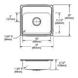 - DRAIN OPENING: Sink drain opening measures 3-1/2 in
