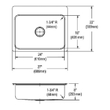 Elkay® LSR27221 Lustertone™ Classic Dual Mount Sink, Rectangle Shape, 1 Faucet Hole, 22 in W x 27 in D x 8 in H, Top/Undermounting, Stainless Steel