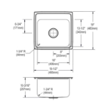 Elkay® PLA1919103 Pursuit™ Laundry Sink, Rectangle Shape, 19 in W x 10-3/16 in D x 19-1/2 in H, Top Mount, Stainless Steel, Lustertone