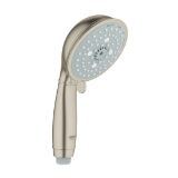 GROHE 27608EN0 New Tempesta® Rustic 100 Hand Shower, 2.5 gpm Flow Rate, 4 Sprays, 3-15/16 in Dia Head, 1/2 in Connection, Brushed Nickel