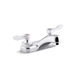 - Two-handle centerset lavatory faucet for 4 in centers