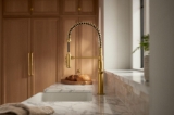 - Professional-style faucet with an easy-to-clean coated hose and removable coil