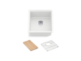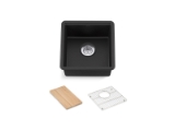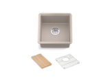 - Rear drain placement increases cabinet storage space underneath sink
