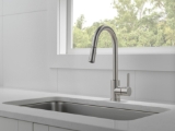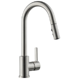 - High-arc spout swivels 360 deg for task management in the kitchen