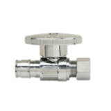 PlumbShop® RELIABLE VALUE™ PLB207X P Straight Quarter-Turn Supply Ball Stop, 1/2 x 3/8 in Nominal, Cold Expansion PEX Barb x OD Compression, 125 psi, Brass Body, Polished Chrome