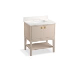 - Vibrant Polished Nickel hardware included on Ferrous Grey vanities and Vibrant Brushed Moderne Brass hardware on Light Clay vanities, Additional hardware finishes available (sold separately)