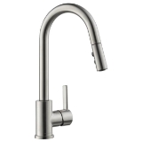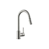 - High-arc, gooseneck spout swivels 360 deg for task management in the kitchen