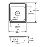 Elkay® D117192 Dayton® Bar Sink, Satin, Rectangle Shape, 14 in L x 14 in W Bowl x 6 in D Bowl, 2 Faucet Holes, 19 17 in L x 19 in W x 6-3/16 in H, Top Mounting, Stainless Steel
